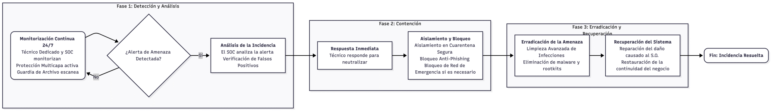 • Técnico Dedicado: Se le asigna un especialista en ciberseguridad como su punto de contacto directo.